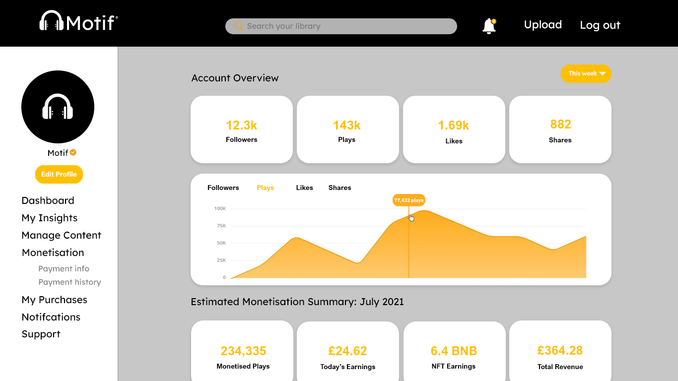 An independent artist streaming platform with an NFT marketplace.